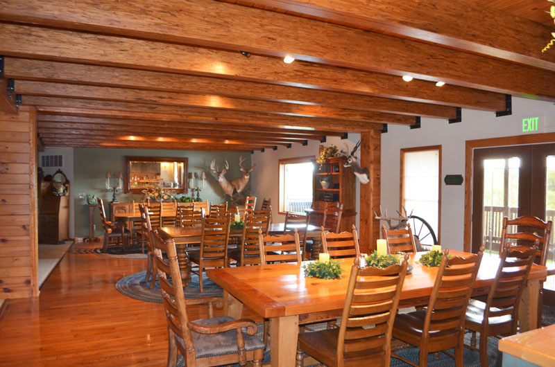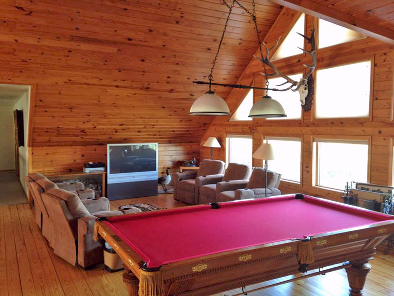 Our lounge areas are just as beautiful and cozy here at WQWR. Our guests can use the lounges to relax, or play a game of pool in the Great Room, or even join in a friendly game of cards. After a long day’s hunt, you’ll enjoy being able to take a quiet break on our back deck and watch the sun set over our 20-acre lake.